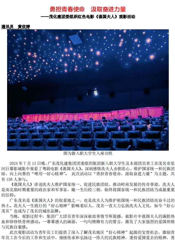 勇?lián)啻菏姑?汲取奮進(jìn)力量 ——茂化建團(tuán)委組織紅色電影《譙國夫人》觀影活動(dòng)