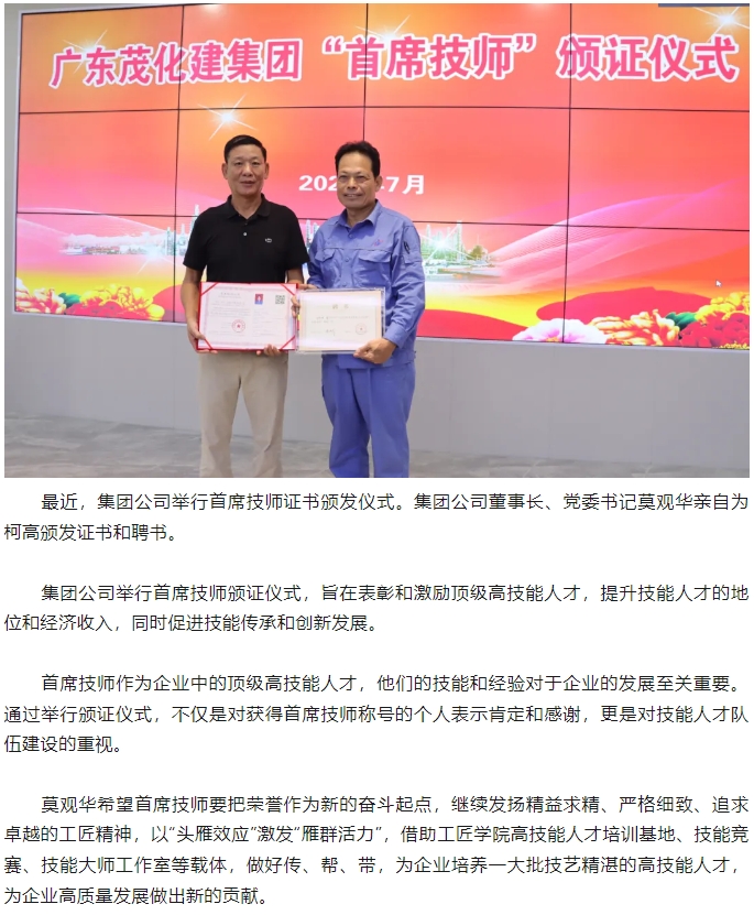 茂化建首位首席技師誕生!