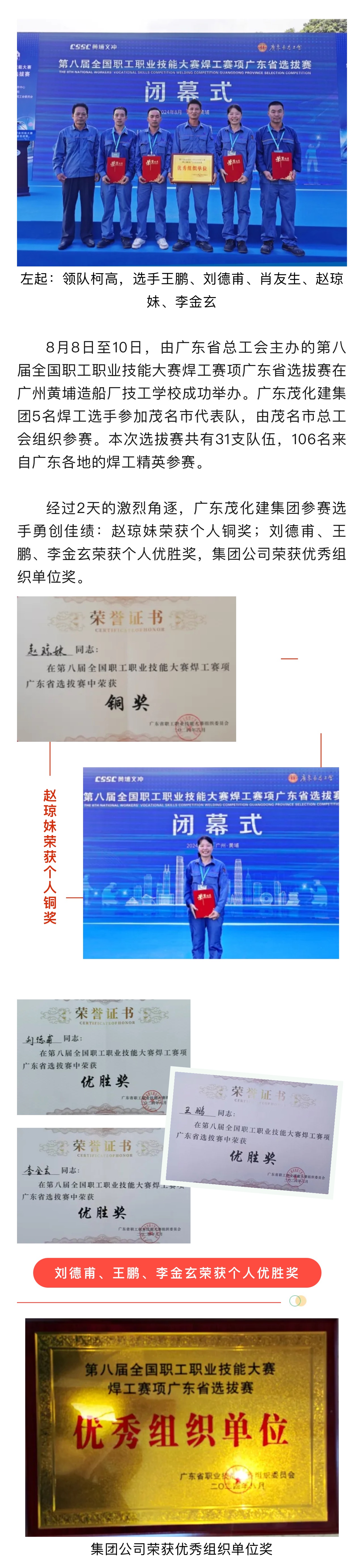 集團公司參加第八屆全國職工職業(yè)技能大賽焊工項廣東省選拔賽創(chuàng)佳績