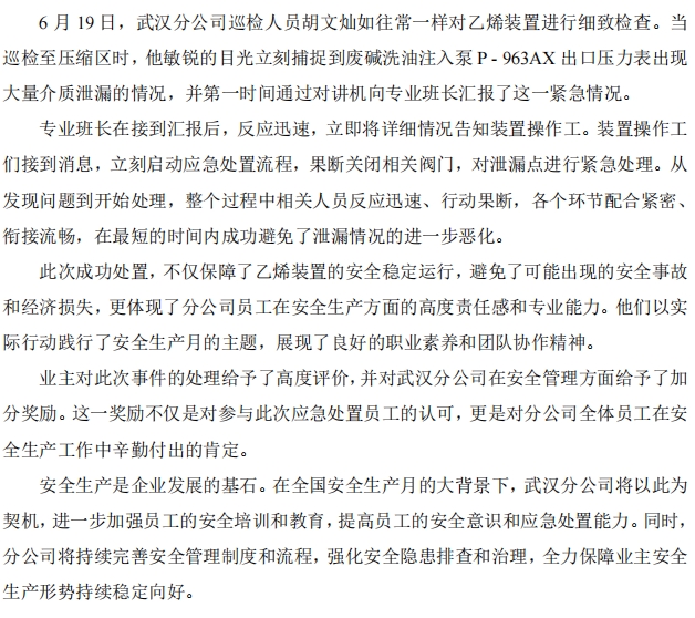武漢分公司員工巡檢立功,獲業(yè)主安全加分獎勵