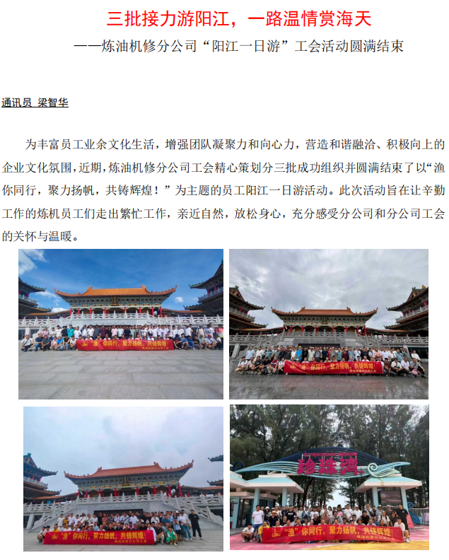 煉油機(jī)修分公司“陽(yáng)江一日游”工會(huì)活動(dòng)圓滿(mǎn)結(jié)束