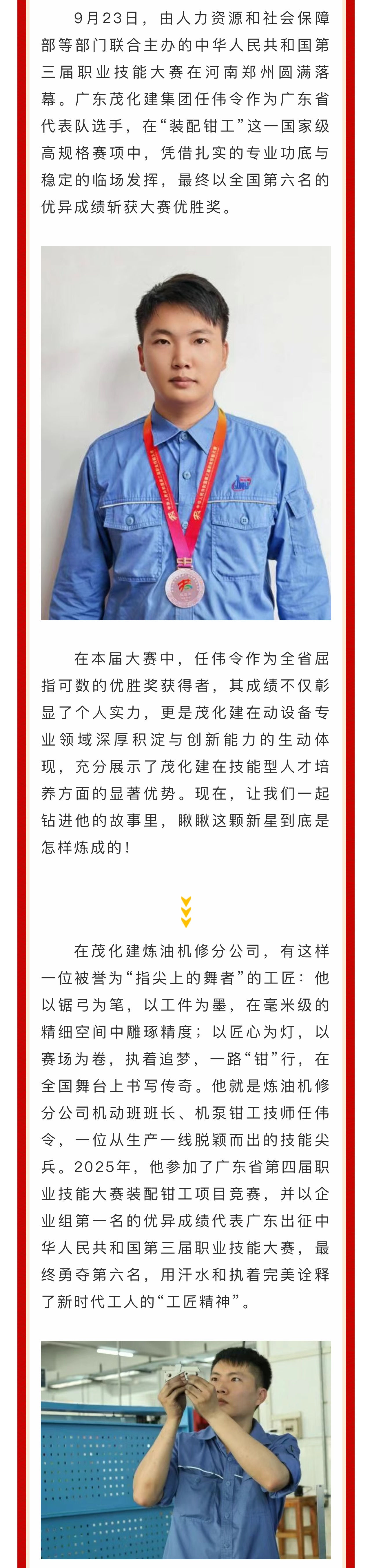 全國第六!廣東茂化建集團(tuán)任偉令斬獲第三屆全國職業(yè)技能大賽優(yōu)勝獎